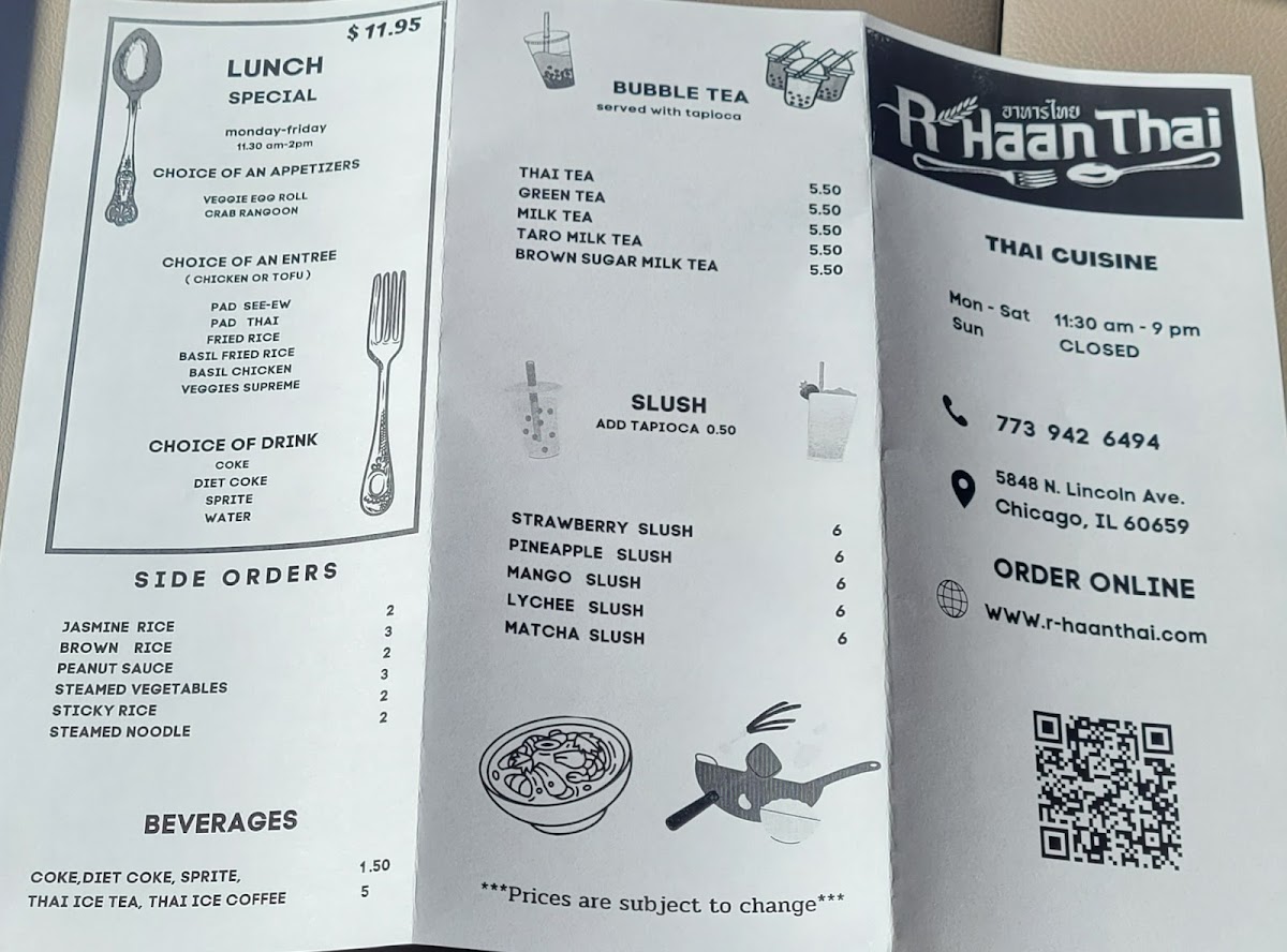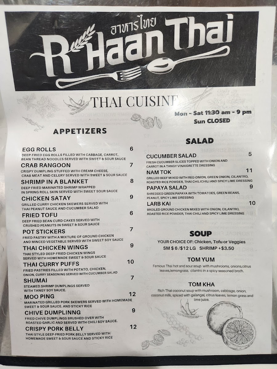 Welcome to R Haan Thai, a delightful gem located at 5848 N Lincoln Ave, Chicago. This restaurant promises an authentic Thai dining experience rich in flavor and tradition. Customers rave about the freshness of the ingredients used, especially in their renowned Curry Puff, which features a flaky pastry filled with chicken and potatoes. The Hor Mok captures the essence of Thai cuisine with its aromatic curry and herbs, while the Fried Tofu and Moo Ping are praised for their perfect textures and bold flavors.